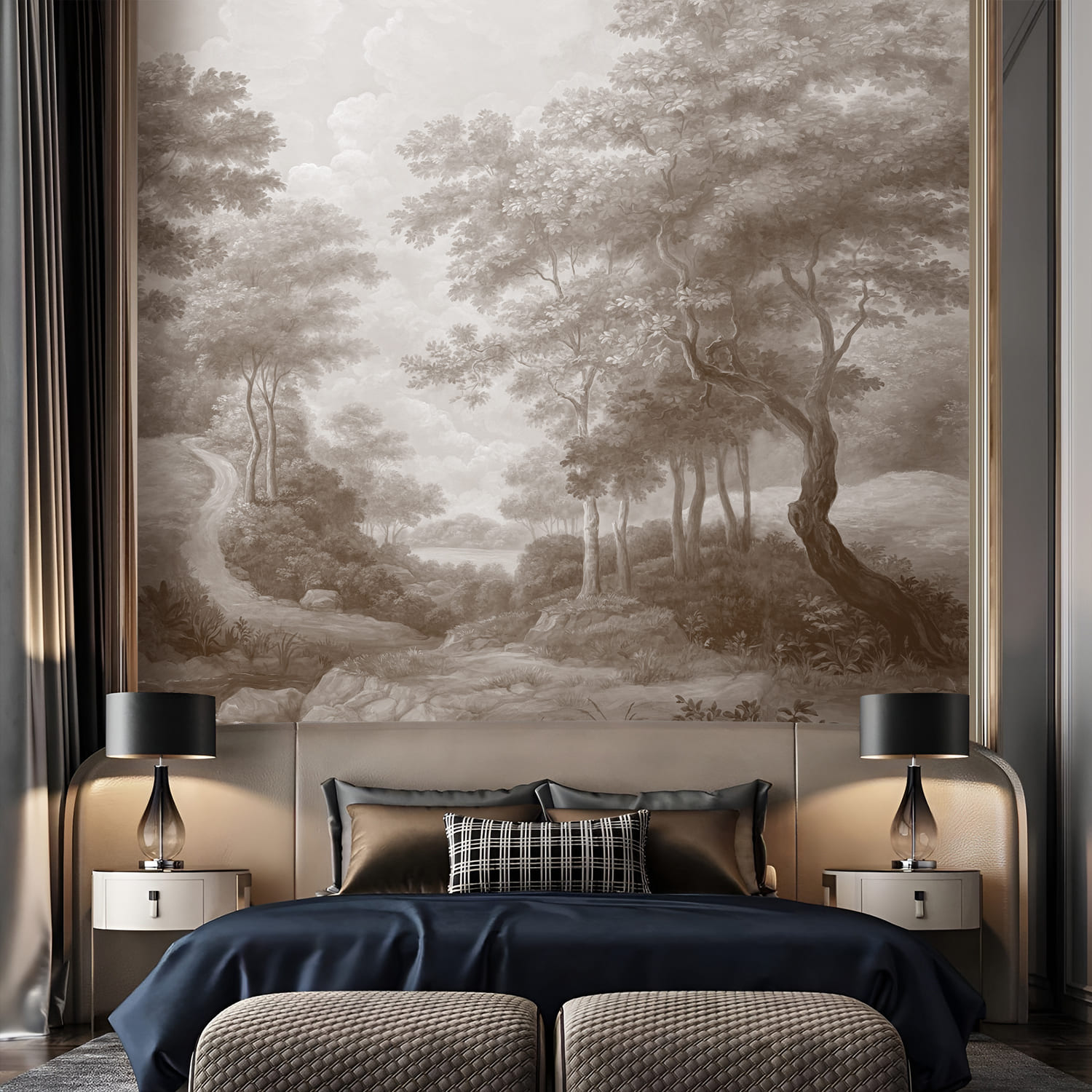 - Размеры: Стандартные панели - Ш 95 см × В 290 см. Бесшовное полотно - Ш любая × В 320 см. Опция Бесшовное полотно доступна для материалов Стандарт, Перламутр и Текстура и Поталь.
