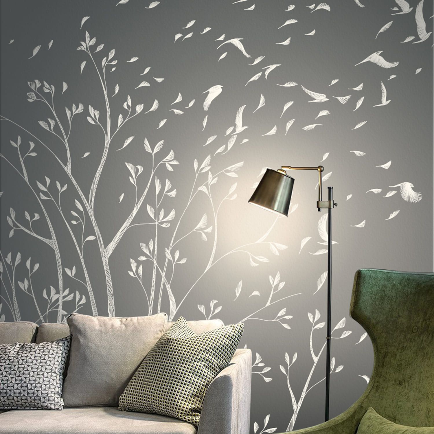 - Возможности: сокращение сроков, любой цвет основы и рисунка, купить краску для соседних стен, изменить композицию под ваш интерьер, изменение масштаба