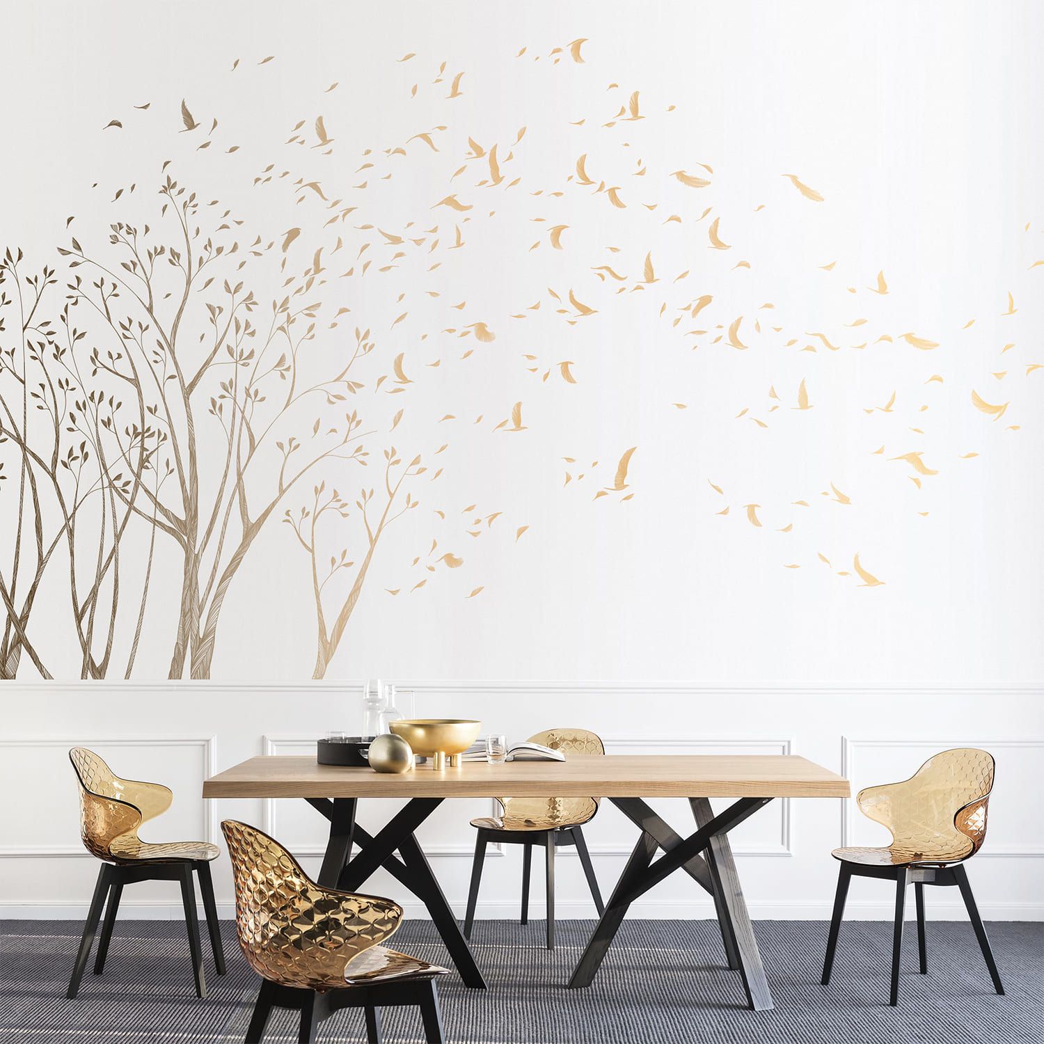 Графические линейные коллекции обоев, выполненные металлизированными чернилами. Такие обои каждый раз изготавливаются вручную по индивидуальному заказу.
