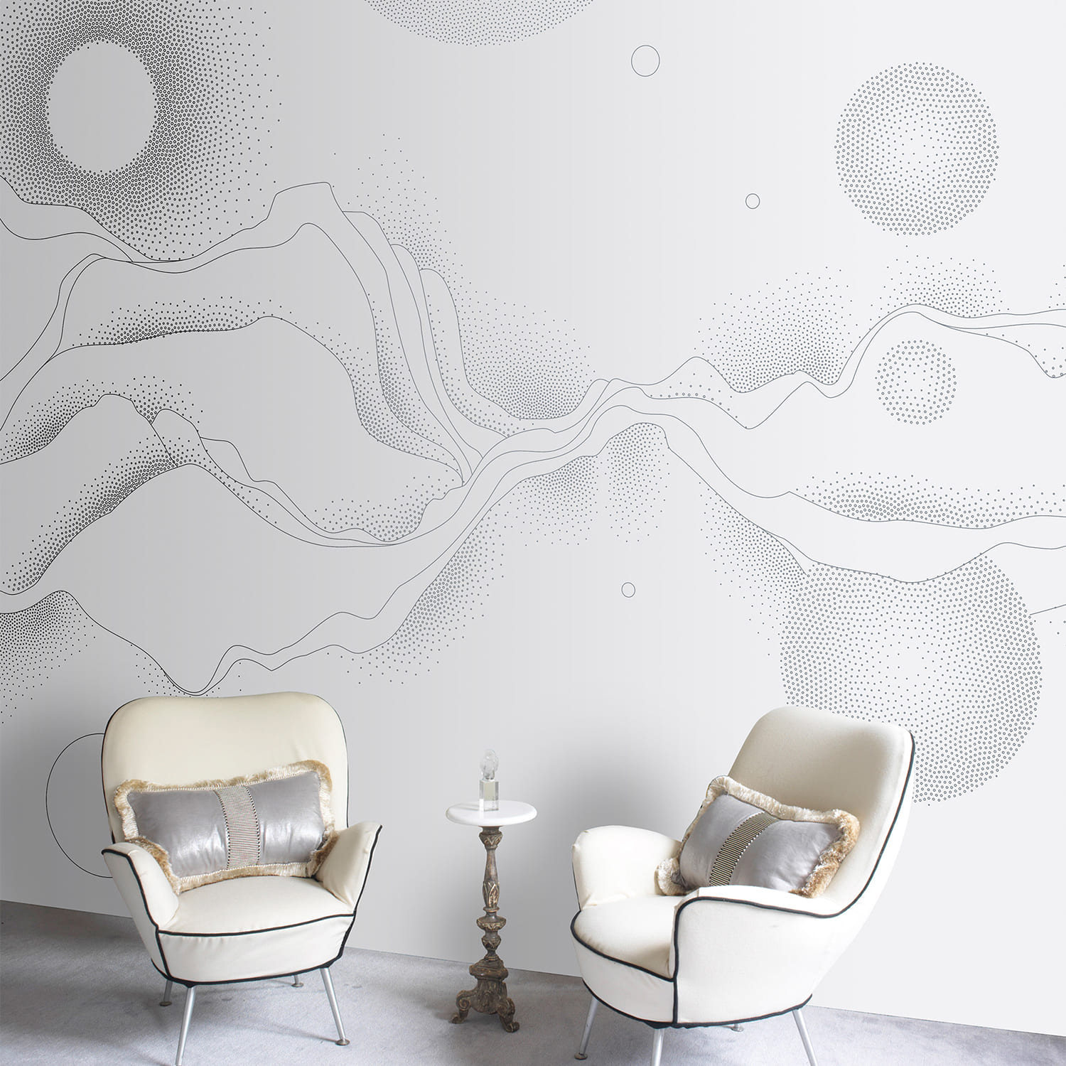 Графические линейные коллекции обоев, выполненные металлизированными чернилами. Такие обои каждый раз изготавливаются вручную по индивидуальному заказу.