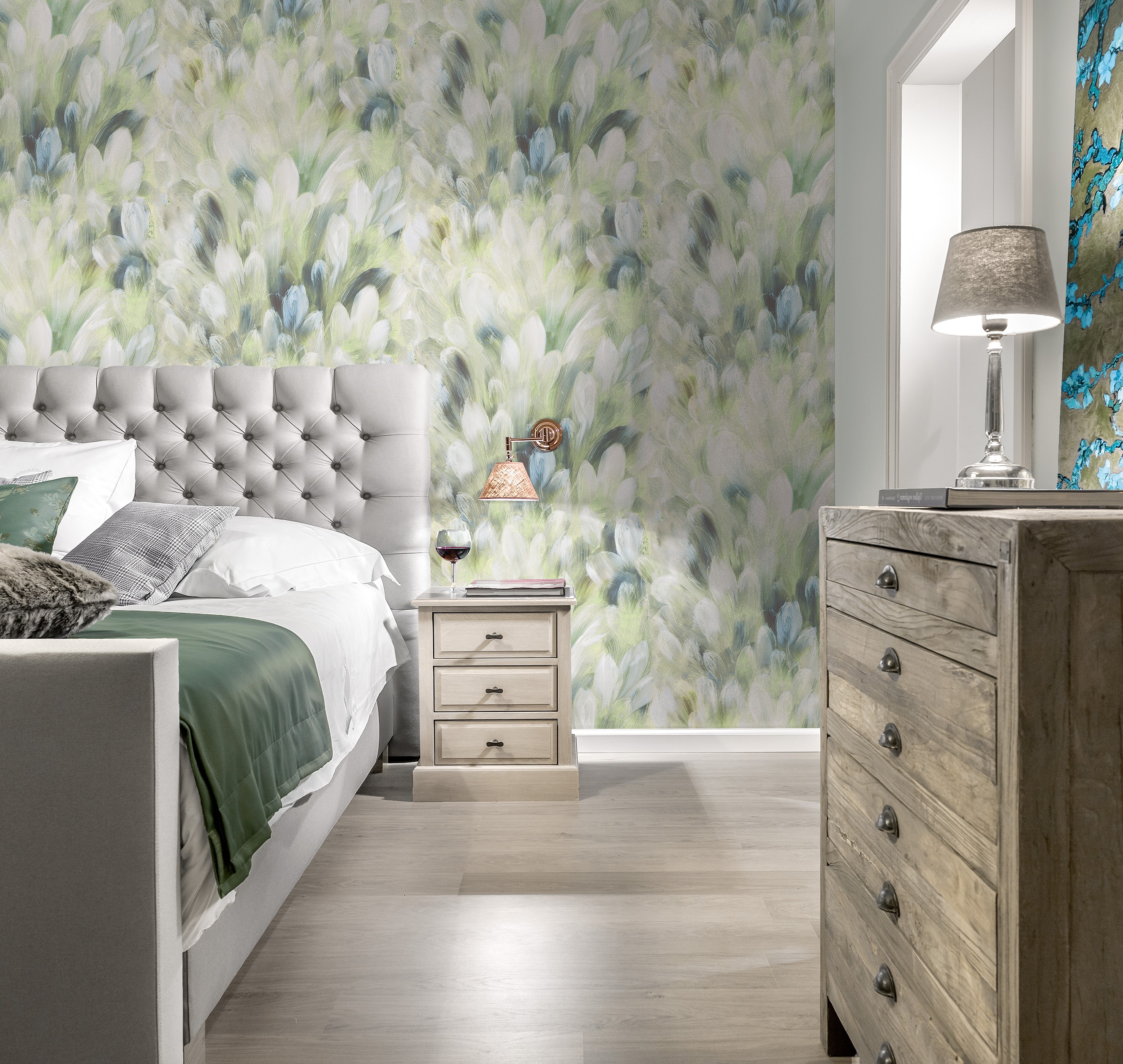 Бесшовные панно производятся на трех эксклюзивных фактурах, каждая из которых визуально и тактильно напоминает текстиль. Такой материал приятен на ощупь, эстетично смотрится при разном освещении и добавляет помещению тепла и уюта.