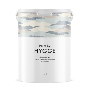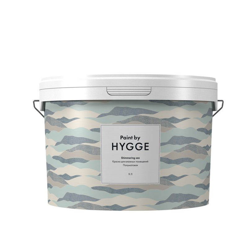 HYGGE Shimmering sea - Полуматовая водно-дисперсионная краска для интерьеров. Подходит для окраски стен и потолков в любых помещениях, в том числе с высокой эксплуатационной нагрузкой и повышенной влажностью.