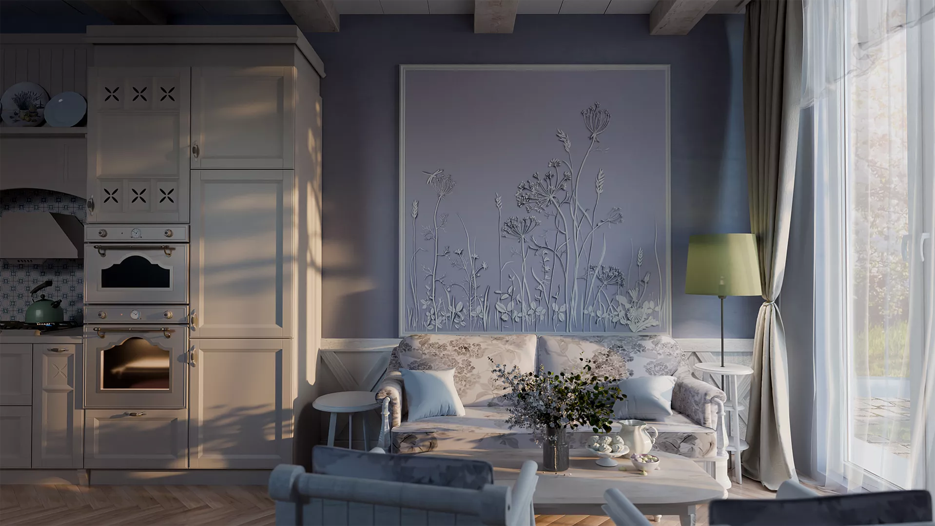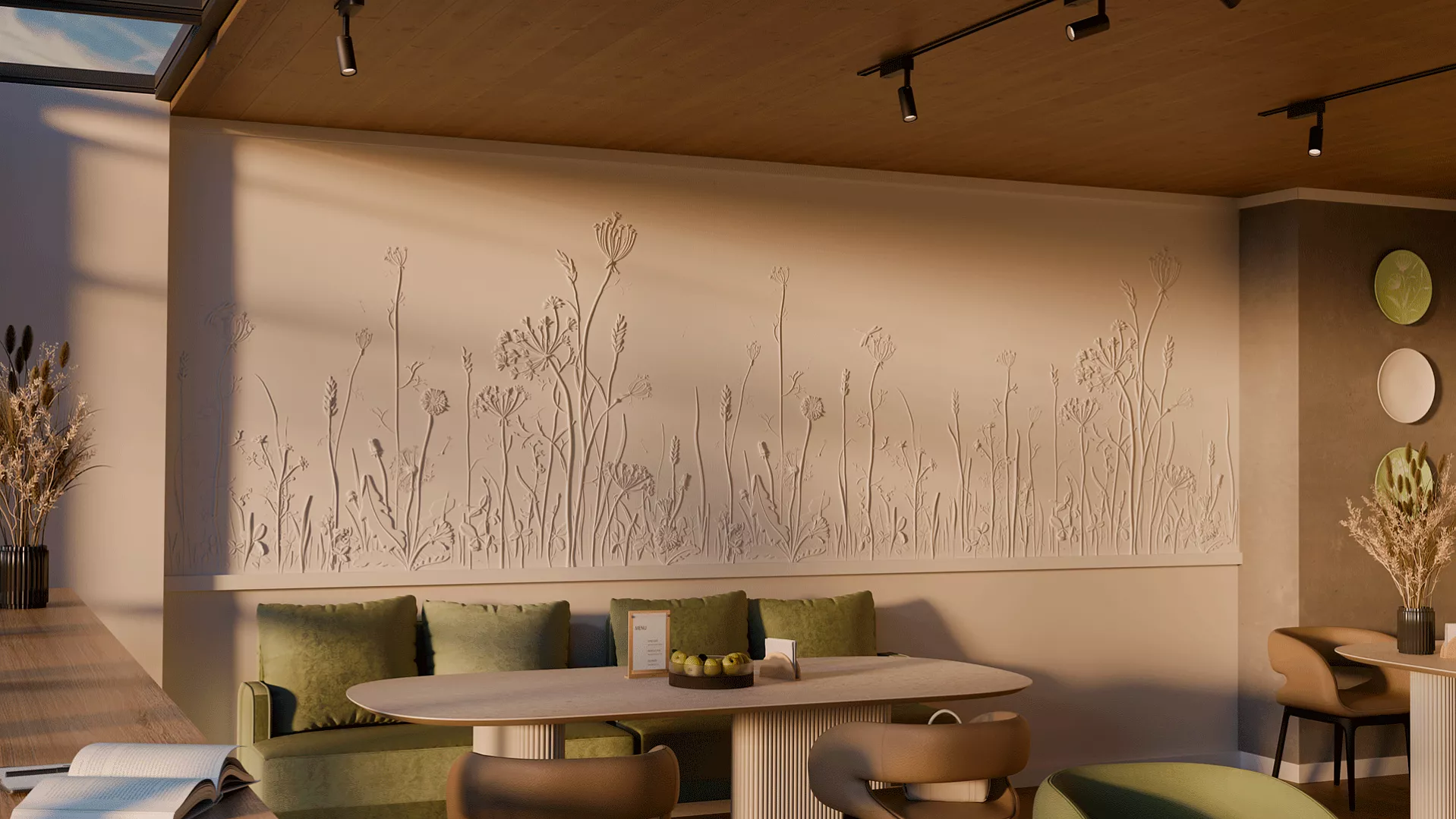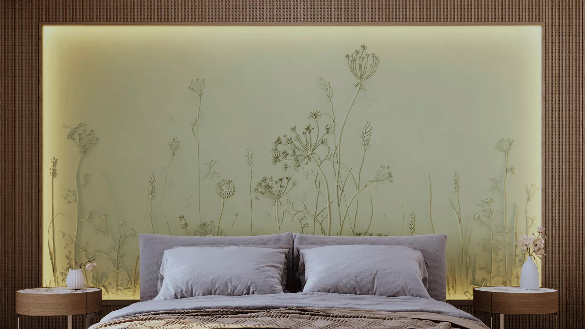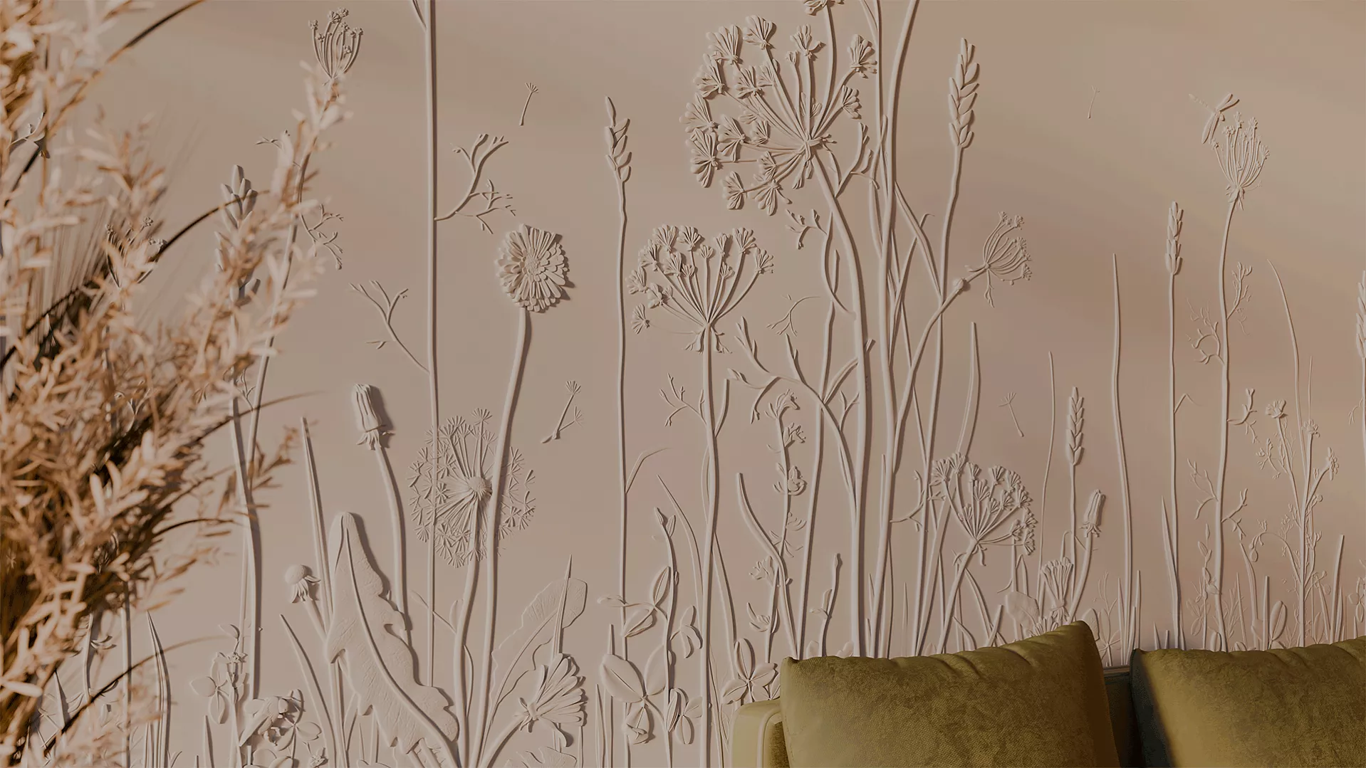 Завораживающее панно с растительным рисунком Provance способно привнести нежность природы в любой интерьер. Инсталляция размером 1800х3000 мм – это словно кадр из тайного сада или страницы редчайших фолиантов, где художественно воспроизведены изящные стебли, тонкие листья, пушистые соцветия и нежные цветы дикорастущих трав. Уникальный дизайн панелей превращает эту композицию в живую симфонию ботанических форм с тончайшей детализацией и природной гармонией.