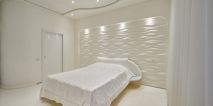 Плавные объемные волны 3D-панелей FORCE формируют декор, напоминающий о теплом море (при горизонтальном расположении) или тонких струйках дыма (при вертикальной ориентации элементов). Отделочный материал позволяет создавать ровную монолитную поверхность без заметных стыков, благодаря чему возможна отделка как небольших участков, так и стен большой площади. За счет оригинальной интерпретации волн гипсовые панели из этой коллекции будут уместны как в классических, так и в современных интерьерах гостиных, спален, залов, зон ресепшен, торговых центров и других объектов. В зависимости от дизайна комнаты поверхность можно оставить белой или окрасить в бежевый, нежно-голубой или другой оттенок.
