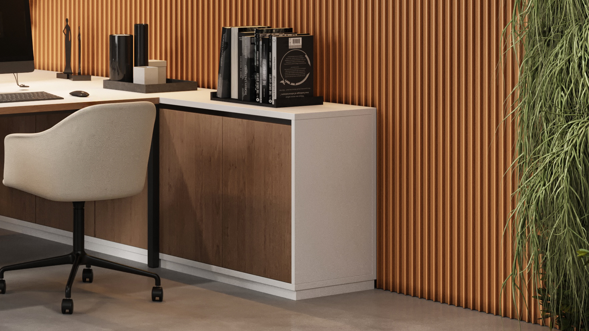С помощью гипсовых 3D-панелей ILLUSION вы сможете создавать неповторимые бесшовные композиции в спальне, гостиной, офисном кабинете, зале ресторана или на других объектах. Уникальность декора в виде прямых реек, расположенных параллельно друг другу на одинаковом расстоянии, становится заметнее после монтажа – рисунок раскрывается по-разному в зависимости от угла обзора. Такого эффекта удалось достичь благодаря продуманному сечению, внешне напоминающему гребни волны.