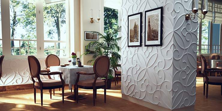 3D-панели с нежным декором ZAFIRA сочетаются с разными стилями: гармонизируют имперскую роскошь ампира, перекликаются с динамичностью и пышностью барокко, повторяют уравновешенность и симметричность классицизма, добавляют домашний уют минимализму, придают мягкость хай-теку. Гипсовые панели подходят для отделки ниши, колонн и всей стены. Если вы хотите подчеркнуть красоту декора или зонировать комнату, окрасьте панели в контрастные оттенки или используйте дополнительную подсветку. Коллекцию можно использовать для украшения зоны камина в гостиной, участка стены над изголовьем кровати в спальне, отдельных поверхностей в уютных кафе и ресторанах, а также в других помещениях.
