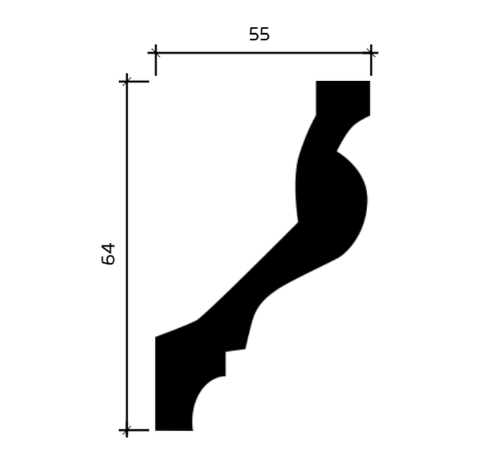 Материал Пенополиуретан Цвет Белый Артикул 1.50.100 гибкий Ширина 55 мм Страна Россия Длина 2000 мм Высота 64 мм -
