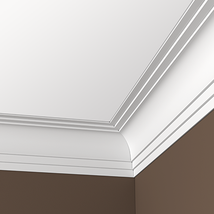 Интерьерный карниз Европласт – декоративная тяга, закрывающая стык между стеной и горизонтальной поверхностью. Также используется для оформления горизонтальной поверхности над окном или дверью. Изготавливаются карнизы из экологически безопасных материалов (пенополиуретана, композита, перфома). Используются во всех современных архитектурных стилях — от классики до лофта и хайтека.