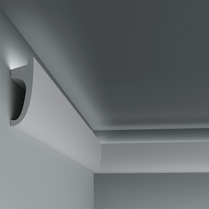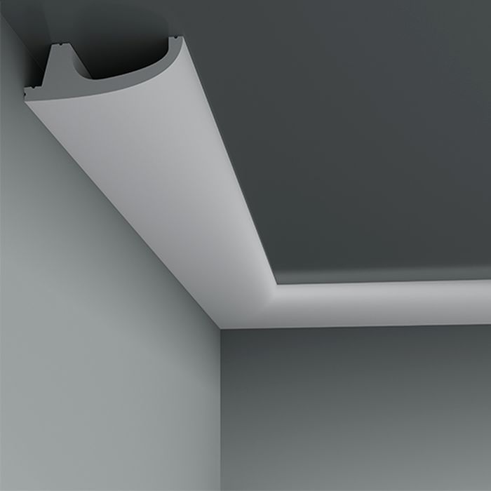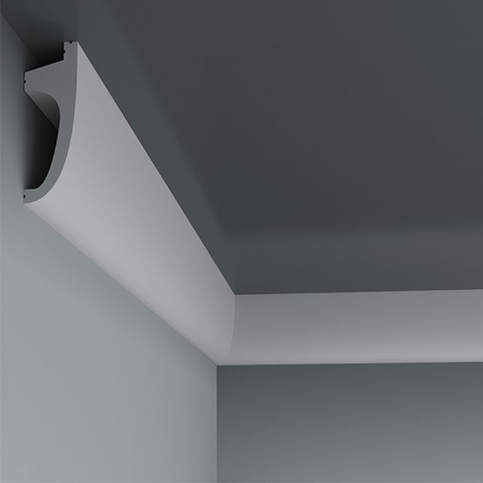 Интерьерный карниз Европласт – декоративная тяга, закрывающая стык между стеной и горизонтальной поверхностью. Также используется для оформления горизонтальной поверхности над окном или дверью. Изготавливаются карнизы из экологически безопасных материалов (пенополиуретана, композита, перфома). Используются во всех современных архитектурных стилях — от классики до лофта и хайтека.