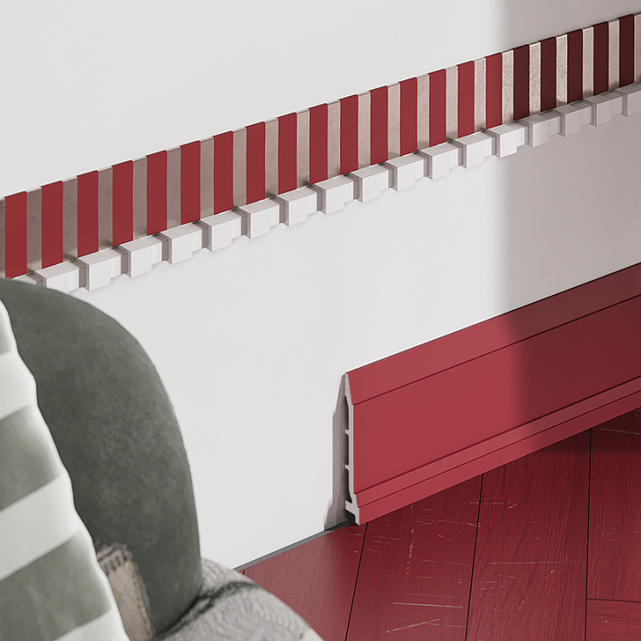 - Дополнительный источник освещения размещается за плинтусом по периметру комнаты и создает потрясающий эффект «парящего» пола.