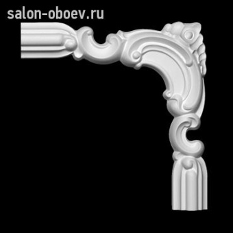 Угловые элементы Европласт – фрагменты лепного декора, которые используются вместе с молдингами для оформления бесшовных стыков тяг под прямым углом. Как и молдинги, угловые элементы выпуклой формы с плоской тыльной поверхностью. Изготавливаются в паре с молдингами, имеют то же сечение, но могут отличаться по рисунку. В совокупности с исходным молдингом составляют цельную композицию.
