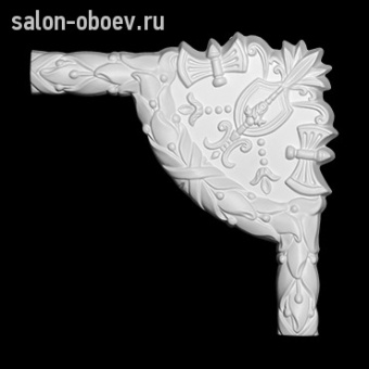 Угловые элементы Европласт – фрагменты лепного декора, которые используются вместе с молдингами для оформления бесшовных стыков тяг под прямым углом. Как и молдинги, угловые элементы выпуклой формы с плоской тыльной поверхностью. Изготавливаются в паре с молдингами, имеют то же сечение, но могут отличаться по рисунку. В совокупности с исходным молдингом составляют цельную композицию.