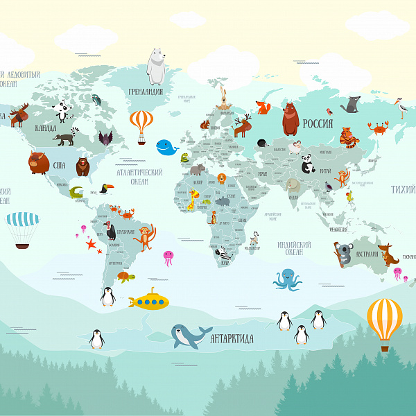 Фотообои Мне обои Детская карта мира 10004-P