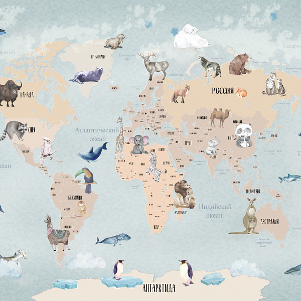 Фотообои Мне обои Акварельная карта с животными 10171-P