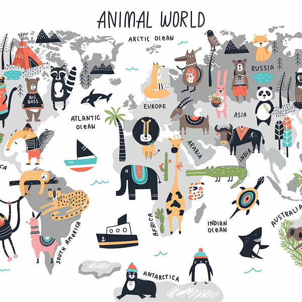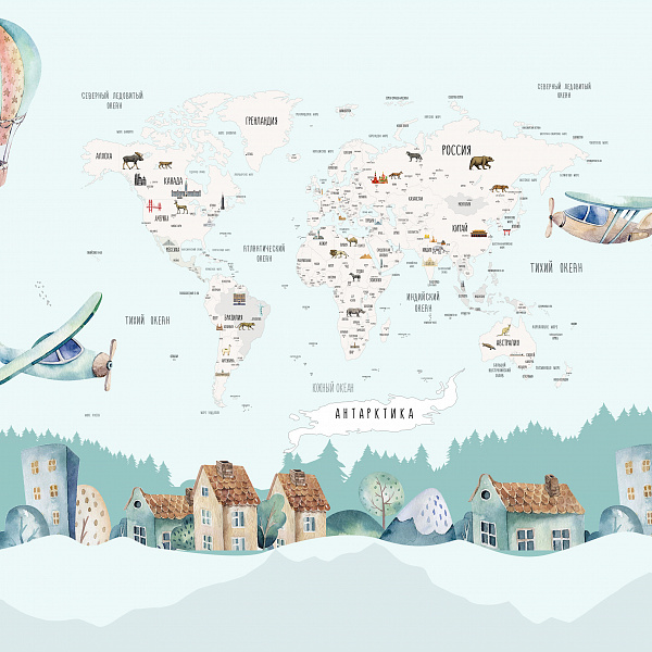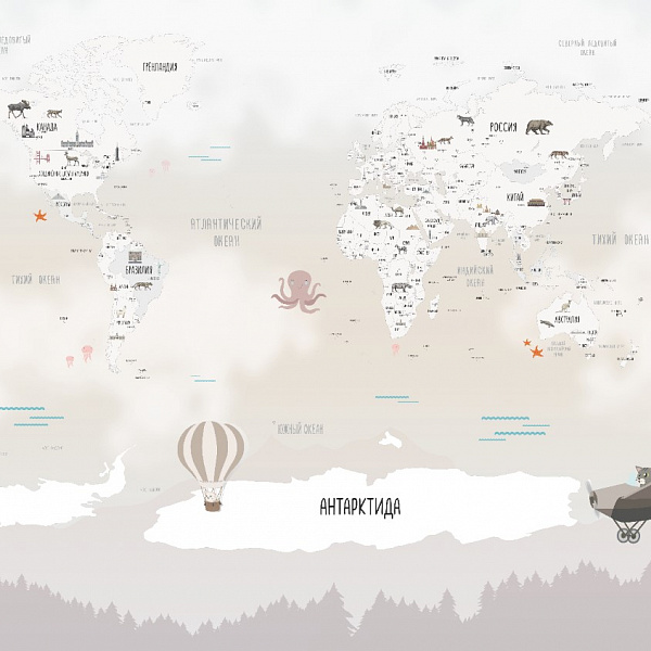 Фотообои Мне обои Белая Детская карта мира 10001-P