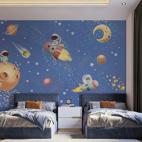 Помещение Для детской Материал Фотообои Вид Бесшовные Артикул 10689 Маленькие космонавты EF Коллекция Космос. Ширина 1 м Страна Россия Длина 1 м Устойчивость к мытью Моющиеся -