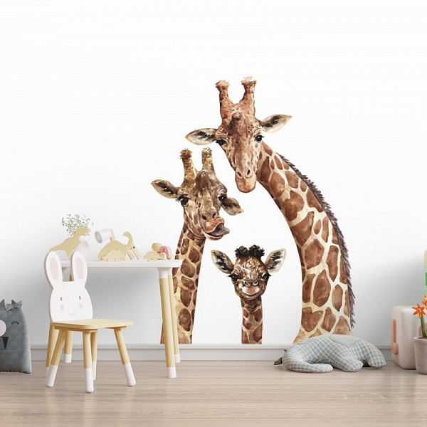Помещение Для детской Материал Фотообои Вид Бесшовные Артикул Семья жирафиков 10290-P Коллекция Сафари Ширина 1 м Страна Россия Длина 1 м Устойчивость к мытью Моющиеся -