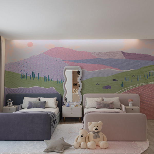 Помещение Для детской Материал Фотообои Вид Бесшовные Артикул Цветочные холмы 10645 S Коллекция Горы. Ширина 1 м Страна Россия Длина 1 м Устойчивость к мытью Моющиеся -