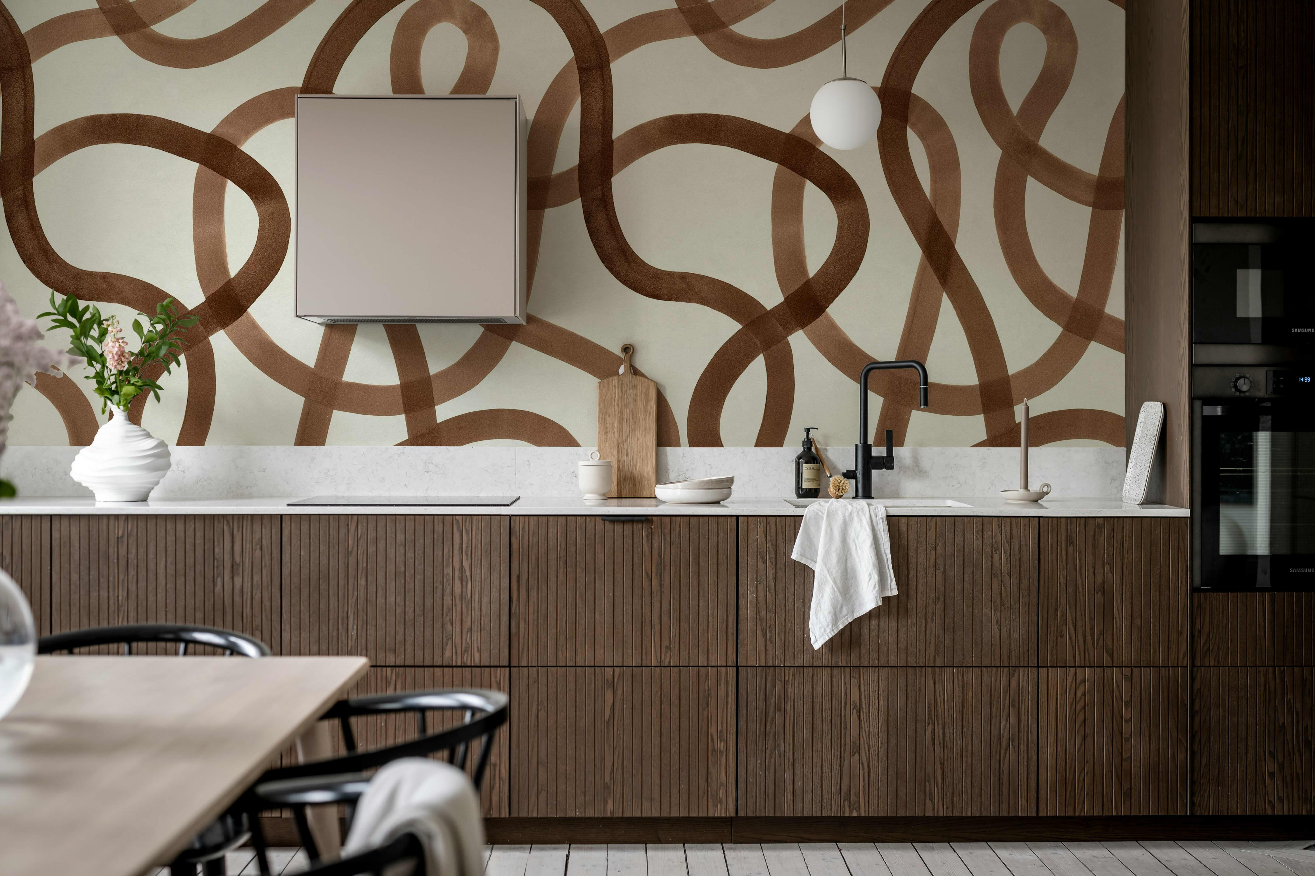 - "Крафт": Бесшовная фреска ручной работы. Материал с оригинальной текстурой, имитирующей благородную структуру коры красного дерева.