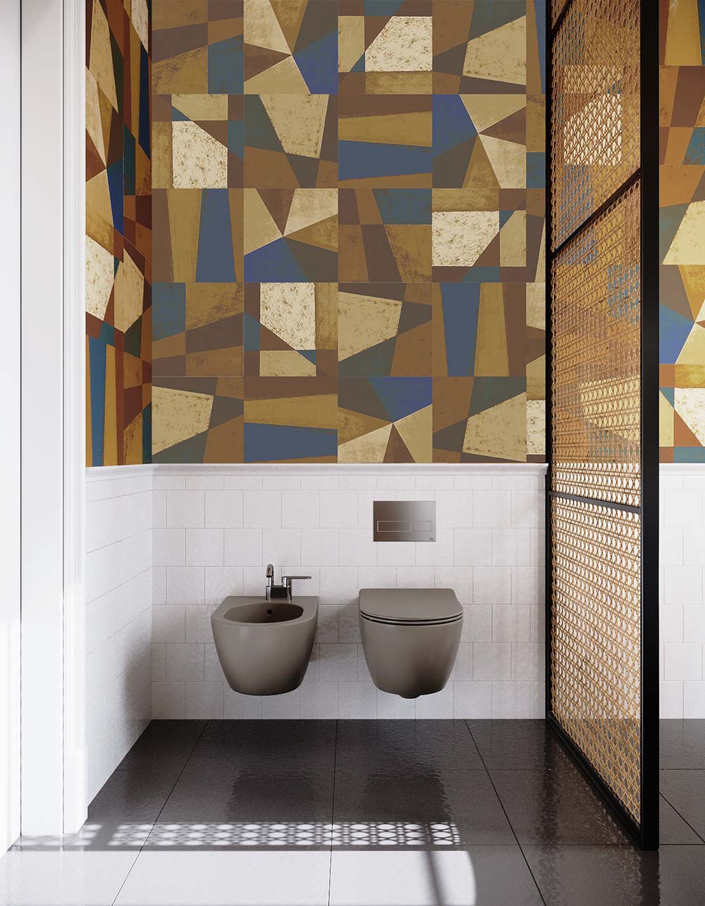 Описание: Плотность и защитный слой делают материал подходящим для использования в ванной и на кухне, кухонном фартуке.