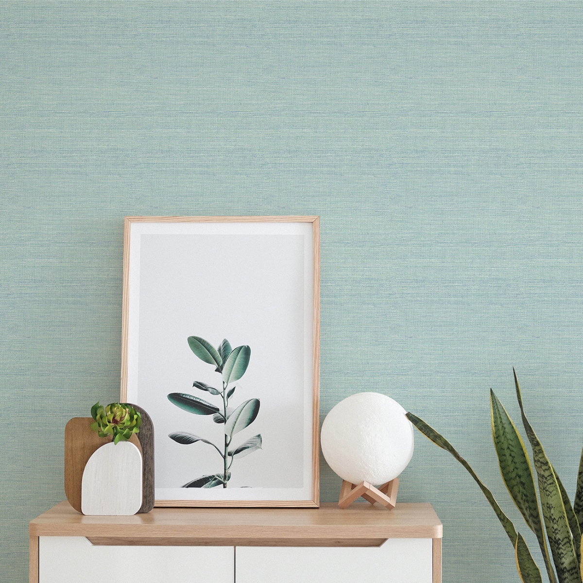 Холодная цветовая палитра этих обоев под искусственную траву придаст вашему интерьеру современный и изысканный вид. Сочетание цвета морской волны, светло-голубого и нежно-зелёного оттенков дополнено рельефными чернилами, которые придают текстуру этому простому дизайну.