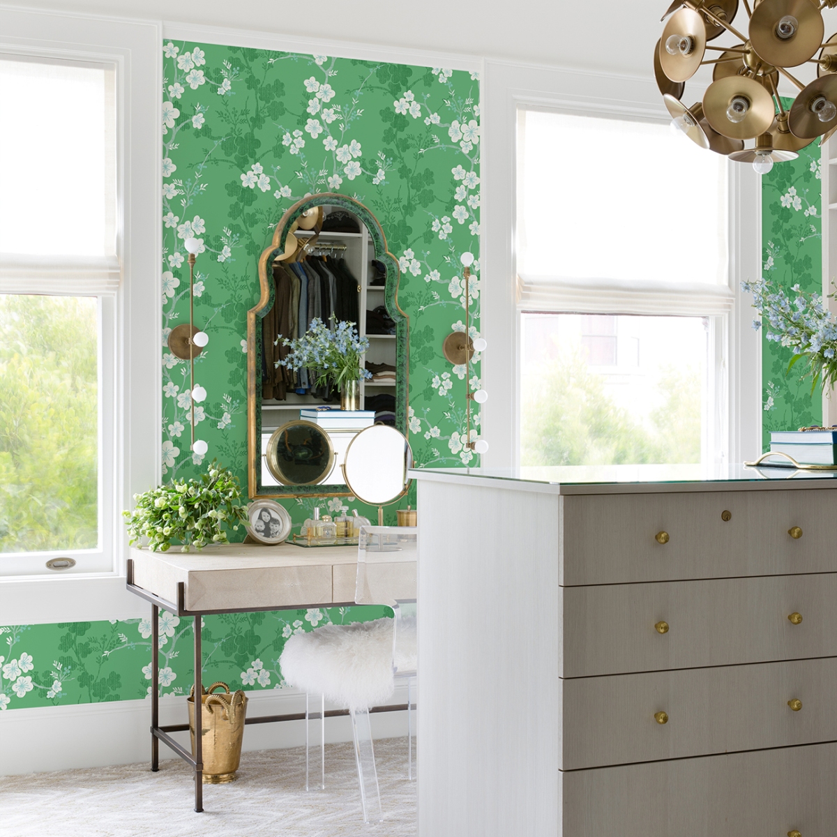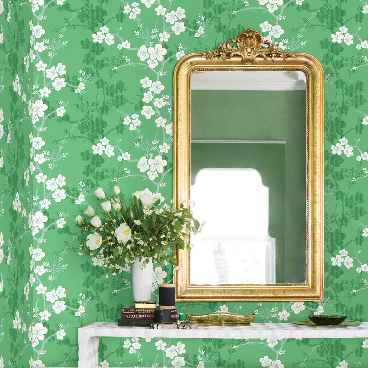 Добавьте в свой дом радостную свежесть нового весеннего дня с этими великолепными цветочными обоями. Современный дизайн в стиле «китайский стиль» включает в себя извилистые ветви, усеянные белыми цветами, на фоне тёмно-зелёных силуэтов на светло-зелёном фоне. Nicolette — это акриловые обои без клея.