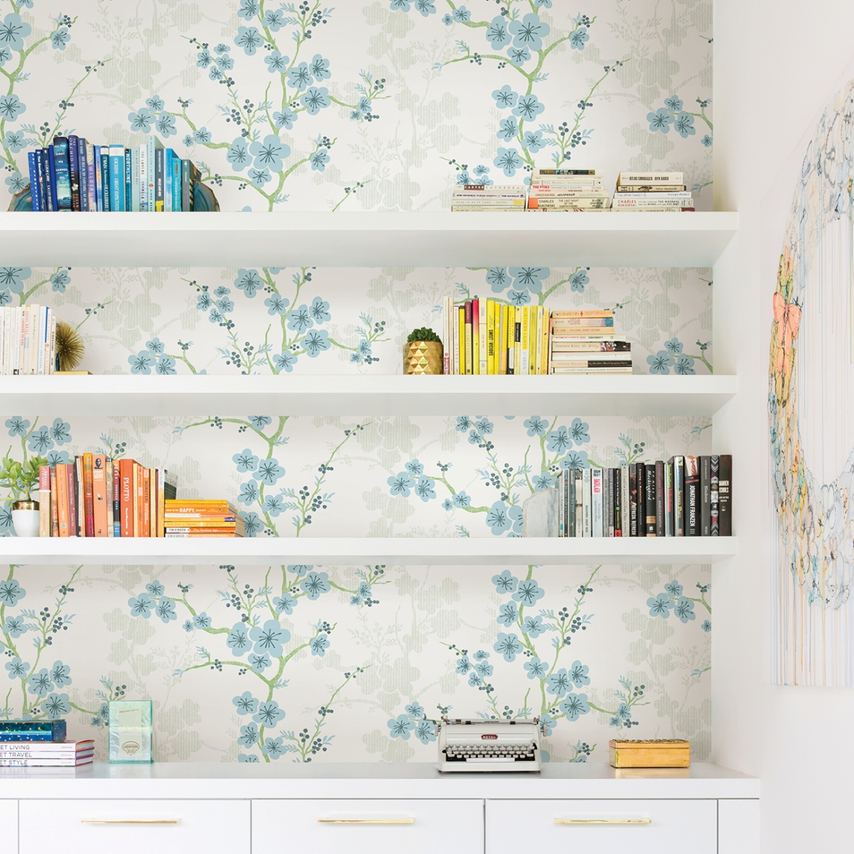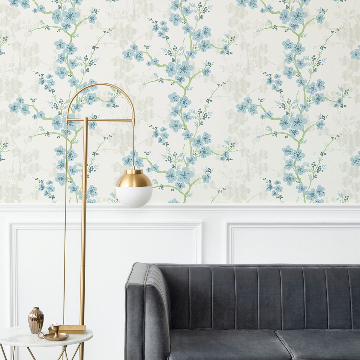 Добавьте в свой дом радостную свежесть нового весеннего дня с этими великолепными цветочными обоями. Современный дизайн в стиле «китайский стиль» включает в себя извилистые ветви, усеянные белыми цветами, на фоне тёмно-зелёных силуэтов на светло-зелёном фоне. Nicolette — это акриловые обои без клея.