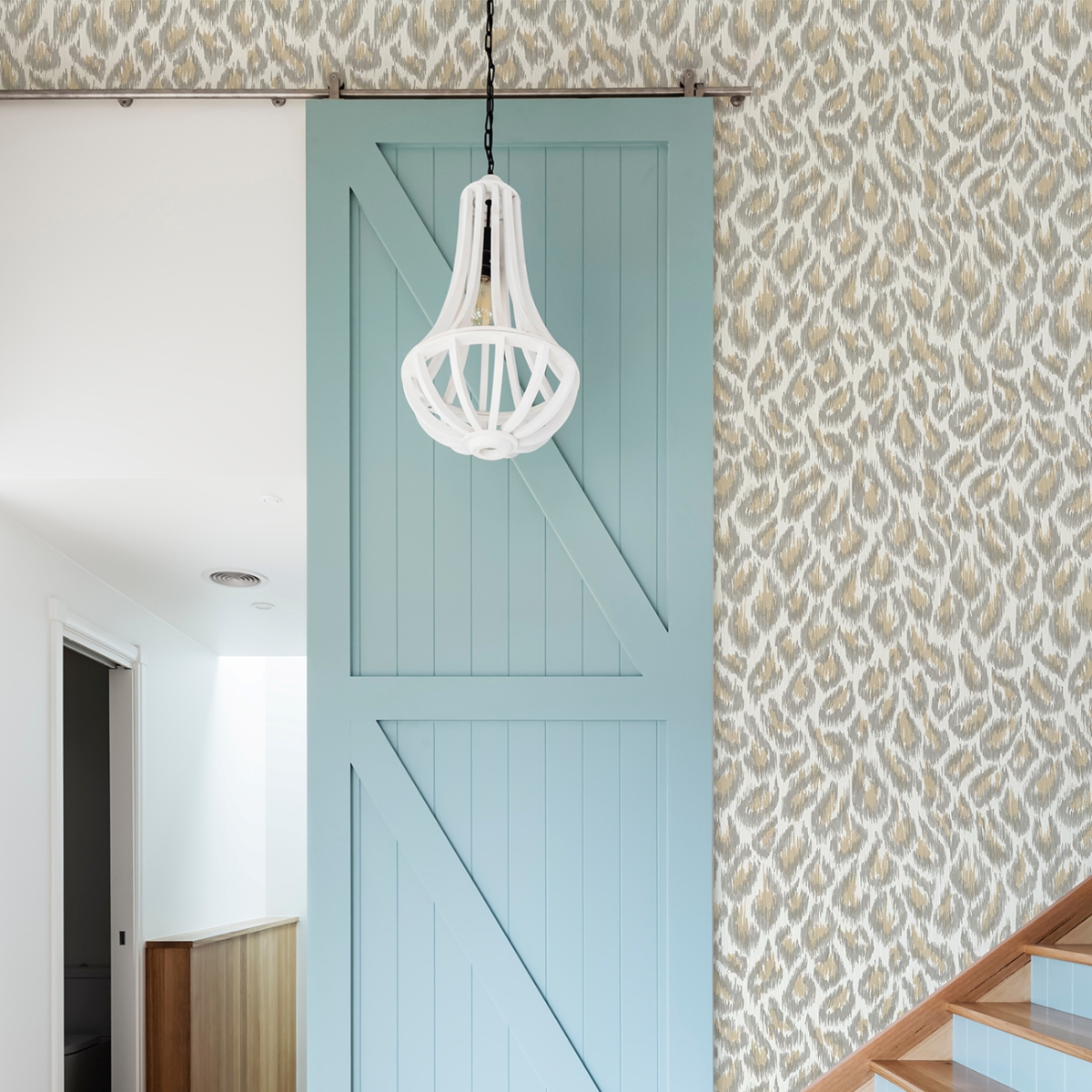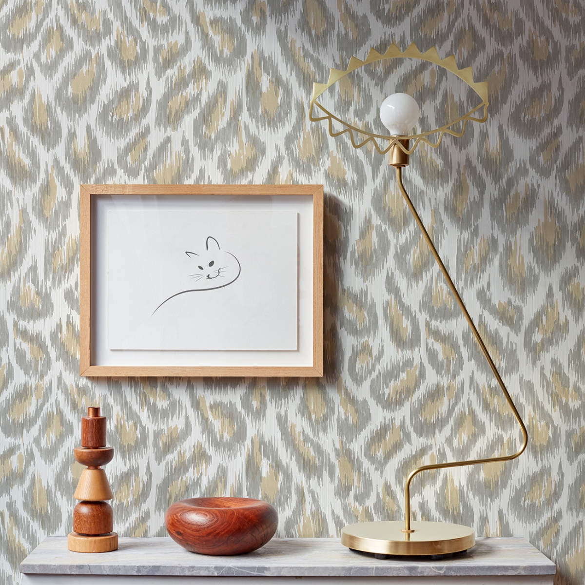 Леопардовый принт обретает современный вид с этими обоями с анималистичным принтом! Пятна большой кошки выполнены чернилами в оттенках синего с отделкой икат – наложением тонких нитей, придающих рисунку тактильные ощущения. Electra – это обои с акриловым покрытием без клея.