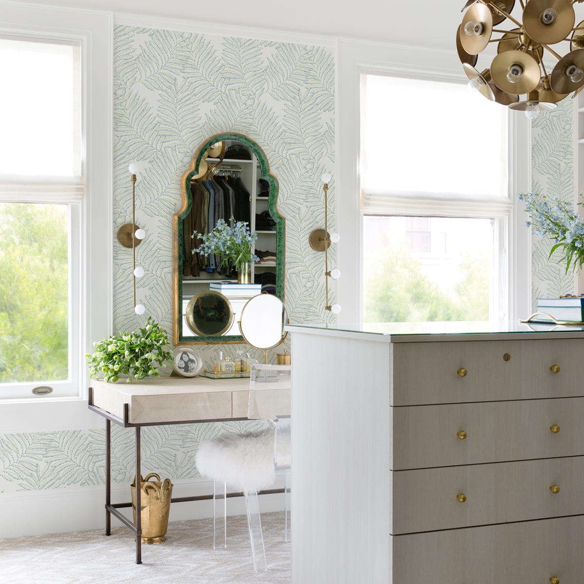 Добавьте зеленую элегантность в свой дом с этими потрясающими обоями с ботаническим рисунком. Крупные листья папоротника, созданные из отдельных мазков чернил светло- и тёмно-зелёного цветов, выполнены в технике «фигуры». Finnley — это акриловые обои без клея.
