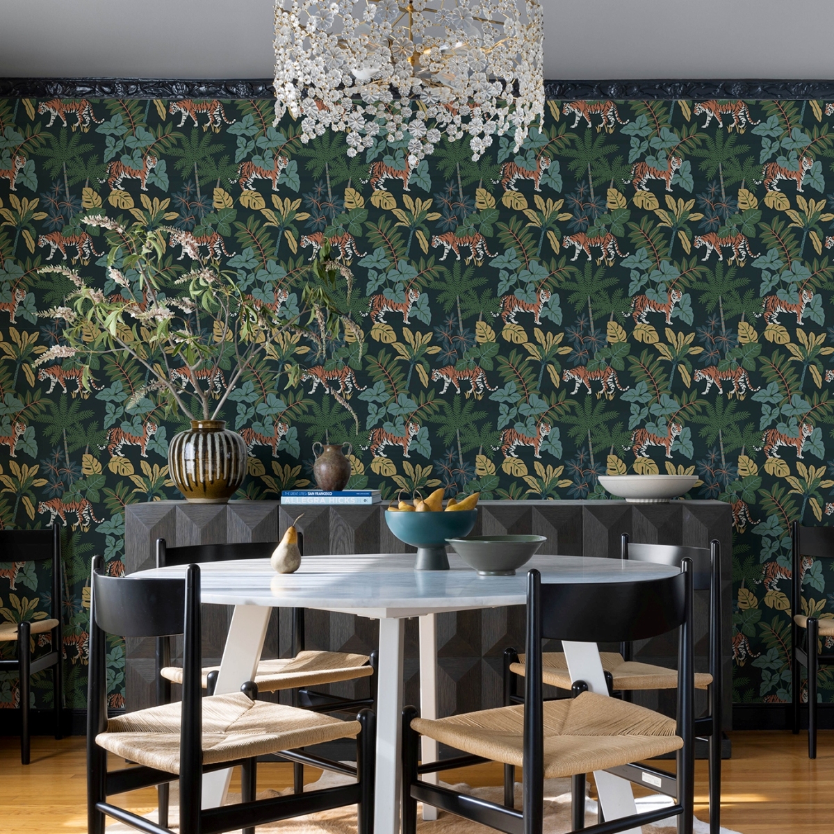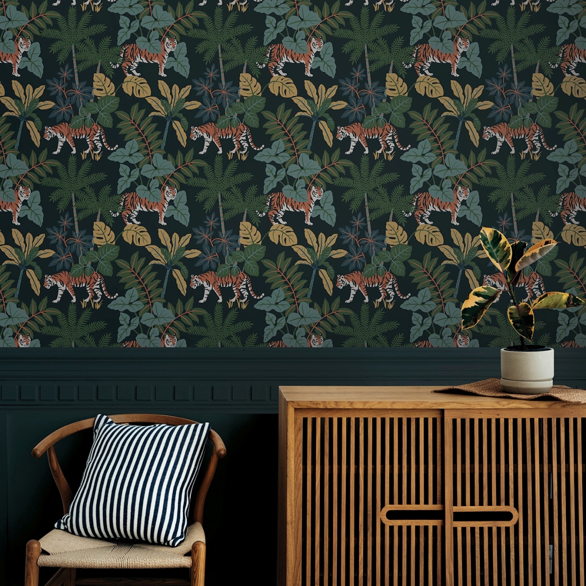 Эти очаровательные обои с изображением джунглей выводят кошачью походку на совершенно новый уровень. Оранжевые тигры рыщут по пышной флоре тропического леса, выполненной в ярких синих, зеленых, желтых и оранжевых тонах на глубоком темно-синем фоне. «Caspian» — это неклееные флизелиновые обои размером 20,5 дюймов в ширину и 33 фута в длину, площадью примерно 56,4 квадратных футов (примерно 56,4 квадратных футов) на рулон.
