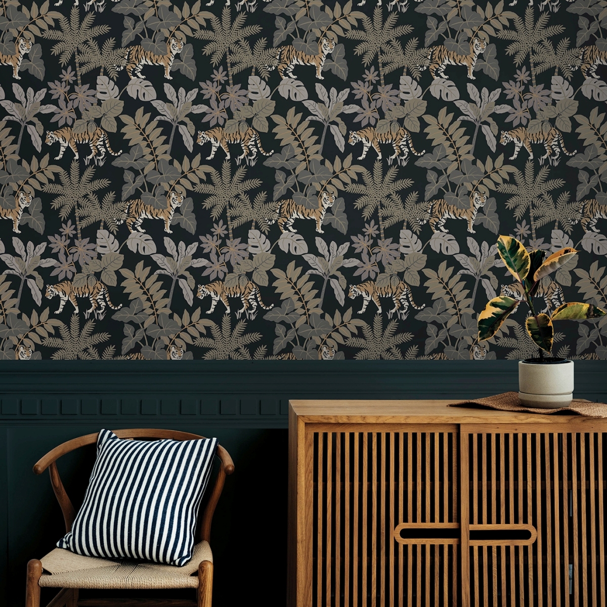Эти очаровательные обои с изображением джунглей выводят кошачью походку на совершенно новый уровень. Оранжевые тигры рыщут по пышной флоре тропического леса, выполненной в ярких синих, зеленых, желтых и оранжевых тонах на глубоком темно-синем фоне. «Caspian» — это неклееные флизелиновые обои размером 20,5 дюймов в ширину и 33 фута в длину, площадью примерно 56,4 квадратных футов (примерно 56,4 квадратных футов) на рулон.