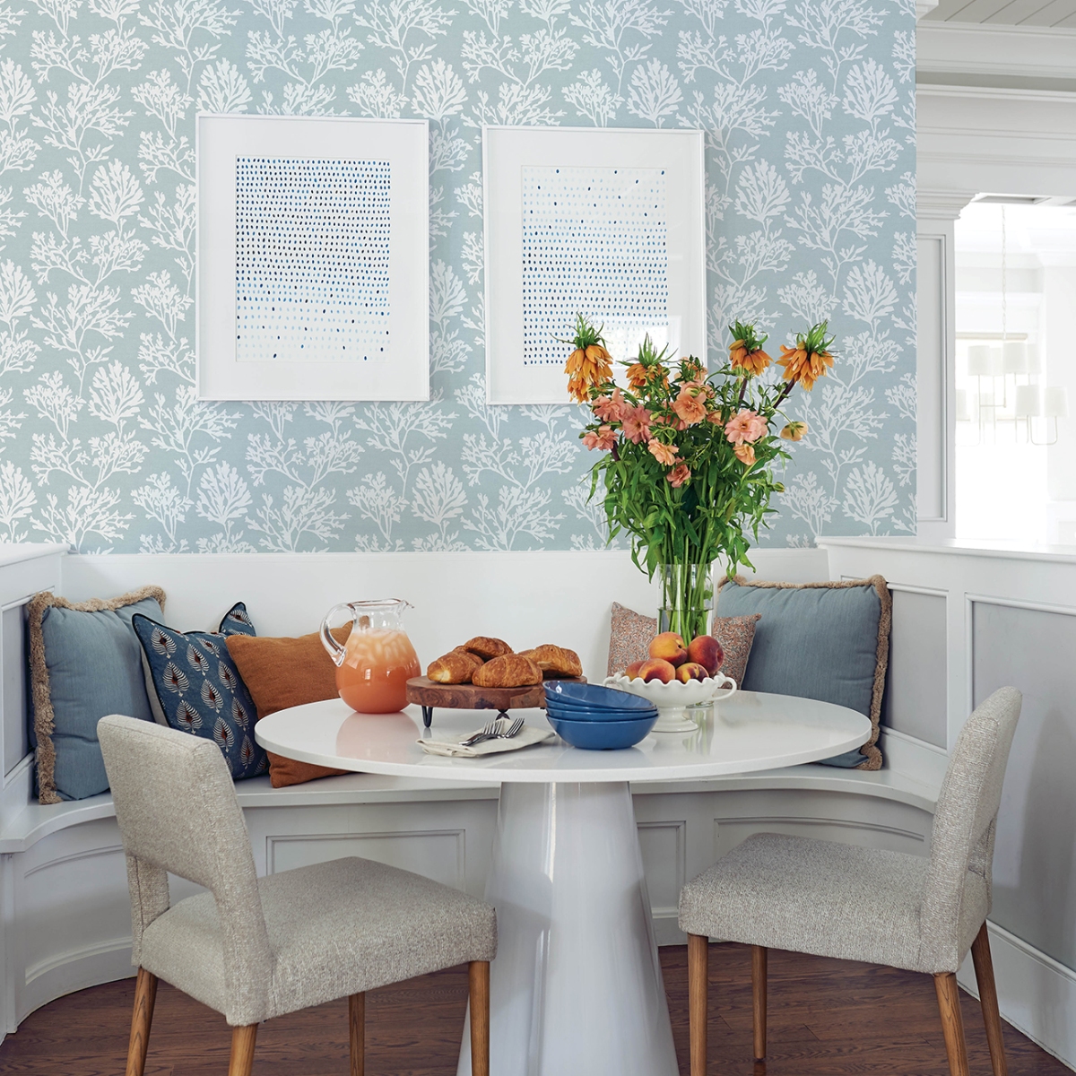 Роскошь побережья во всей красе: шикарные коралловые силуэты напечатаны нежно-розовым на кремовом фоне на плотном, но нежном бумажном полотне. Tortuga — это обои из травяного полотна с бумажным переплетением без клея, размером 27 дюймов в ширину и 27 футов в длину, что составляет площадь примерно 60,8 квадратных футов на рулон.