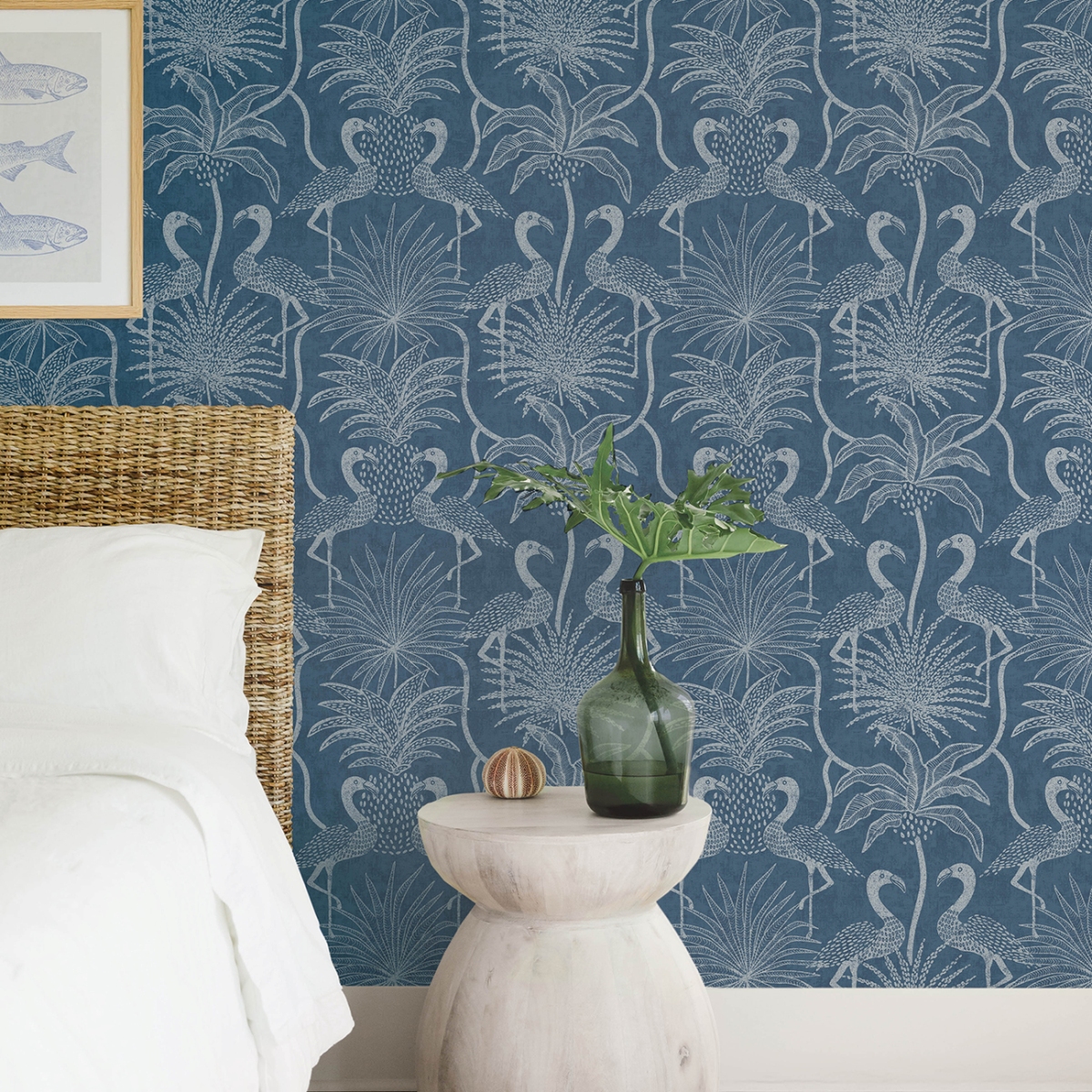 Фламинго собираются вокруг пальм на этих восхитительно причудливых тропических обоях. Здесь они представлены в белом цвете на бледно-бирюзовом фоне. Biscayne — это неклееные флизелиновые обои размером 27 дюймов в ширину и 27 футов в длину, что составляет площадь примерно 60,8 квадратных футов на рулон.