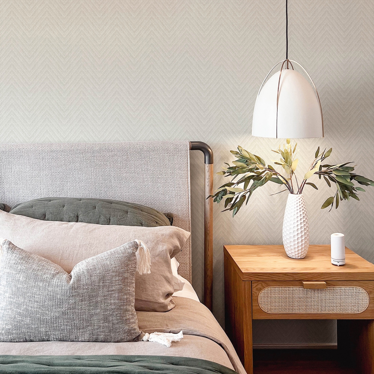 Элегантные и изысканные обои с шевронами украсят ваш интерьер. Неподвластный времени узор состоит из переплетенных сегментов белого и блестящего серебристого цветов, а рельефные чернила придают ему текстуру и перламутровый блеск.