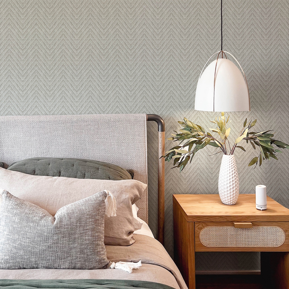 Элегантные и изысканные обои с шевронами украсят ваш интерьер. Неподвластный времени узор состоит из переплетенных сегментов белого и блестящего серебристого цветов, а рельефные чернила придают ему текстуру и перламутровый блеск.