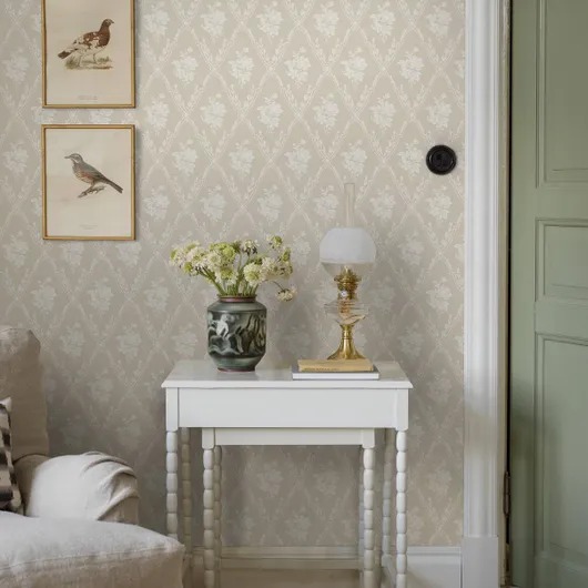 Обои Västigårn Opal, выполненные в теплом бежевом цвете на кремово-белом фоне, создают на стенах редкое ощущение присутствия. Простой узор обоев в виде шпалер с цветами и листвой, выполненный на основе исторического рисунка конца 1800-х годов, найденного на ферме Ямтланд, от которой они и получили свое название, полон глубины и интереса. Повесьте эти обои в стиле Vastigarn Opal, чтобы создать в вашем доме классически элегантное пространство.