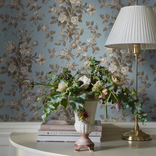 Обнаруженные в комнате для прислуги в королевском летнем дворце в замке Туллгарн в провинции Сёдерманланд, эти обои создают безмятежный фон, излучающий тихое великолепие. Его палитра, выполненная в восхитительном небесно-голубом цвете с мягкими бежевыми и серо-коричневыми деталями, отражает оригинальный дизайн 1880-х годов и напечатана на нашей традиционной машине для поверхностной печати, установленной в 1905-м году, которая придает обоям плавный, тактильный принт — всё для того, чтобы имитировать красивый 150-летний оригинал. Используйте обои Tullgarn Artisan Blue, чтобы создать на вашей стене нежные ритмы, похожие на медальоны, с букетами анемон и боярышника.