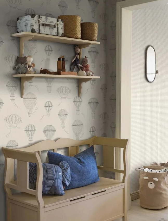 Детские обои «В небесах», выполненные в естественных пастельных тонах серого и бежевого, создают неподвластный времени нейтральный фон. Они вызывают ощущение приключений и исследований и украшены красивыми иллюстрациями с изображением воздушных шаров, летящих по стенам. Эти великолепные обои Up in the Sky идеально подойдут для спальни, игровой комнаты или детской вашего ребёнка. Создайте универсальную и мечтательную атмосферу для отдыха.