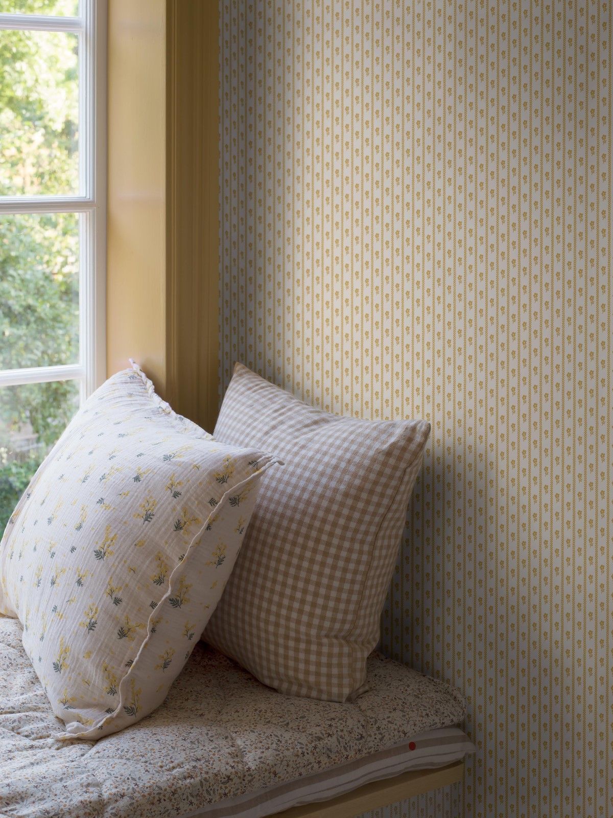 Наши обои Lilla Lyckan Whisper с рисунком «маленькое счастье», выполненные в теплом и жизнерадостном желтом цвете, принесут истинную радость вашим стенам. Нарисованные от руки полосы виноградных лоз и миниатюрных цветов на светлом фоне вдохновлены очаровательным французским текстилем 18-19 веков. Такие узоры выглядят спокойными, гармоничными и домашними, но при этом не надоедают – в них много деталей, на которые можно обратить внимание. Традиционный принт клеевой печати придает поверхности обоев красивую глубину, припыленную матовость и подлинное ощущение мастерства ручной работы. Обои производятся на флизелине с использованием экологически чистых красителей на водной основе, устойчивы к свету и мытью, что позволяет использовать их на кухнях, в столовых и гостиных комнатах. Поклейте эти жизнерадостные обои Lilla Lyckan Whisper, чтобы придать любому пространству милое, нежное выражение.