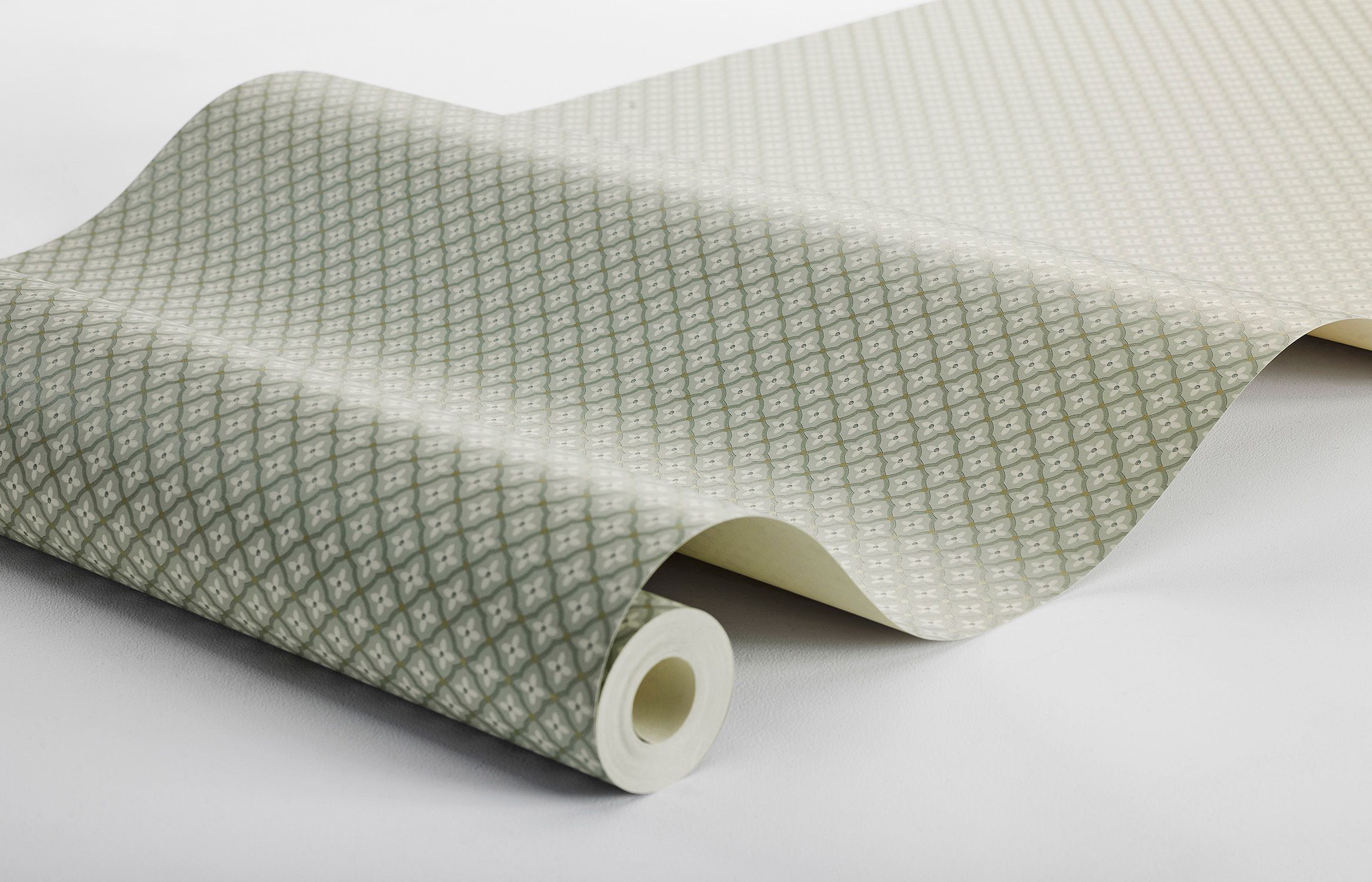 Экологичные обои Selma Seacoast Gray – это воплощение современной элегантности в интерьере. На фоне, где пудрово-нефритово-зеленые оттенки переплетаются в изысканную композицию, раскинулся геометрический трельяж в теплых бежевых тонах. Изящные золотые горошины, украшающие пересечения узорчатой решётки, добавляют полотну благородную роскошь. Мелкий декоративный орнамент создает гармоничное, целостное восприятие на стенах, при этом при ближайшем рассмотрении раскрывается всей глубиной своего замысловатого дизайна. Нежные зеленые оттенки фона в сочетании со сдержанными золотыми акцентами и стилизованными мелкими цветочками формируют особую атмосферу – утонченную и в то же время уютную. Syren – это не просто обои, это способ создать пространство, где современность встречается с классикой, а природная палитра гармонирует с благородными металлами. Они привносят в интерьер ту изысканную утонченность, которая достигается сочетанием природной простоты и изысканного декоративного искусства.