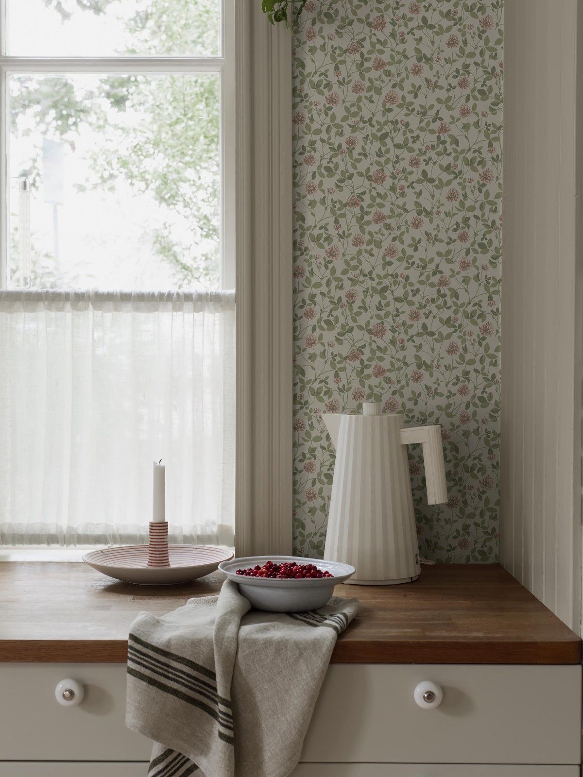 На этих красивых экологичных обоях Klöver Misty Moonstone изображены теплые белые цветы клевера среди пудровых оливково-зеленых листьев на светло-бежевом фоне. Этот успокаивающий дизайн вдохновлен рисунком 1970-х годов из архивов Boråstapeter. Мелкий узор придает комнате неподвластный времени шарм и в то же время ненавязчиво напоминает о спокойствии летнего поля. Поклейте обои Klöver Misty Moonstone, чтобы создать в комнате безмятежную и располагающую атмосферу.