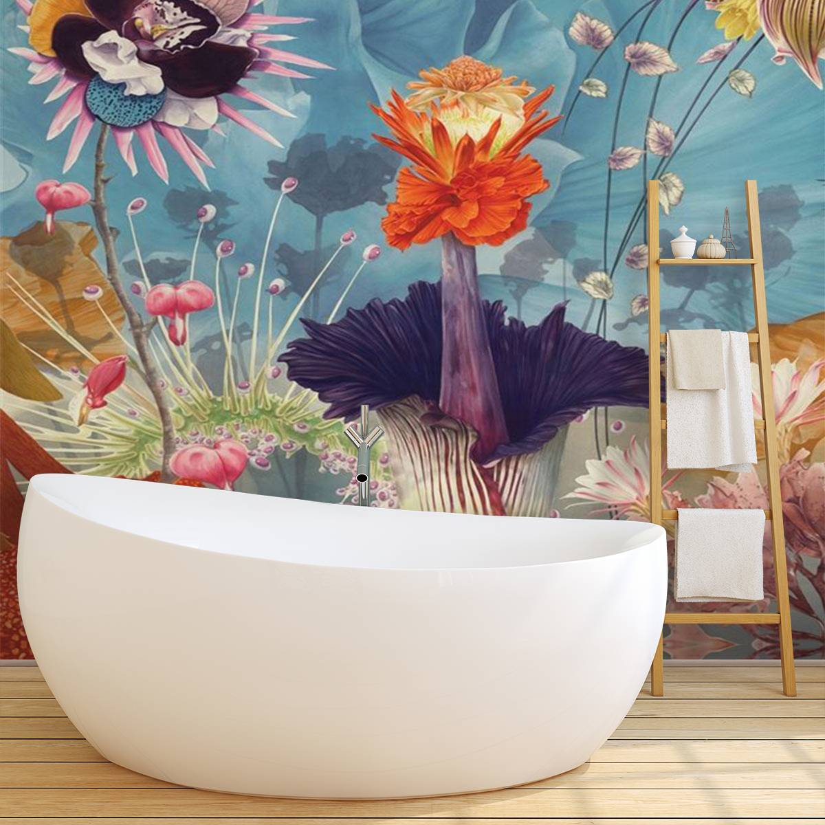Эти впечатляющие панорамные обои от Christian Lacroix Maison изображают буйную фреску из диких и вымышленных цветов. Напечатаны цифровым способом на гладкую нетканую основу для удобства монтажа.
