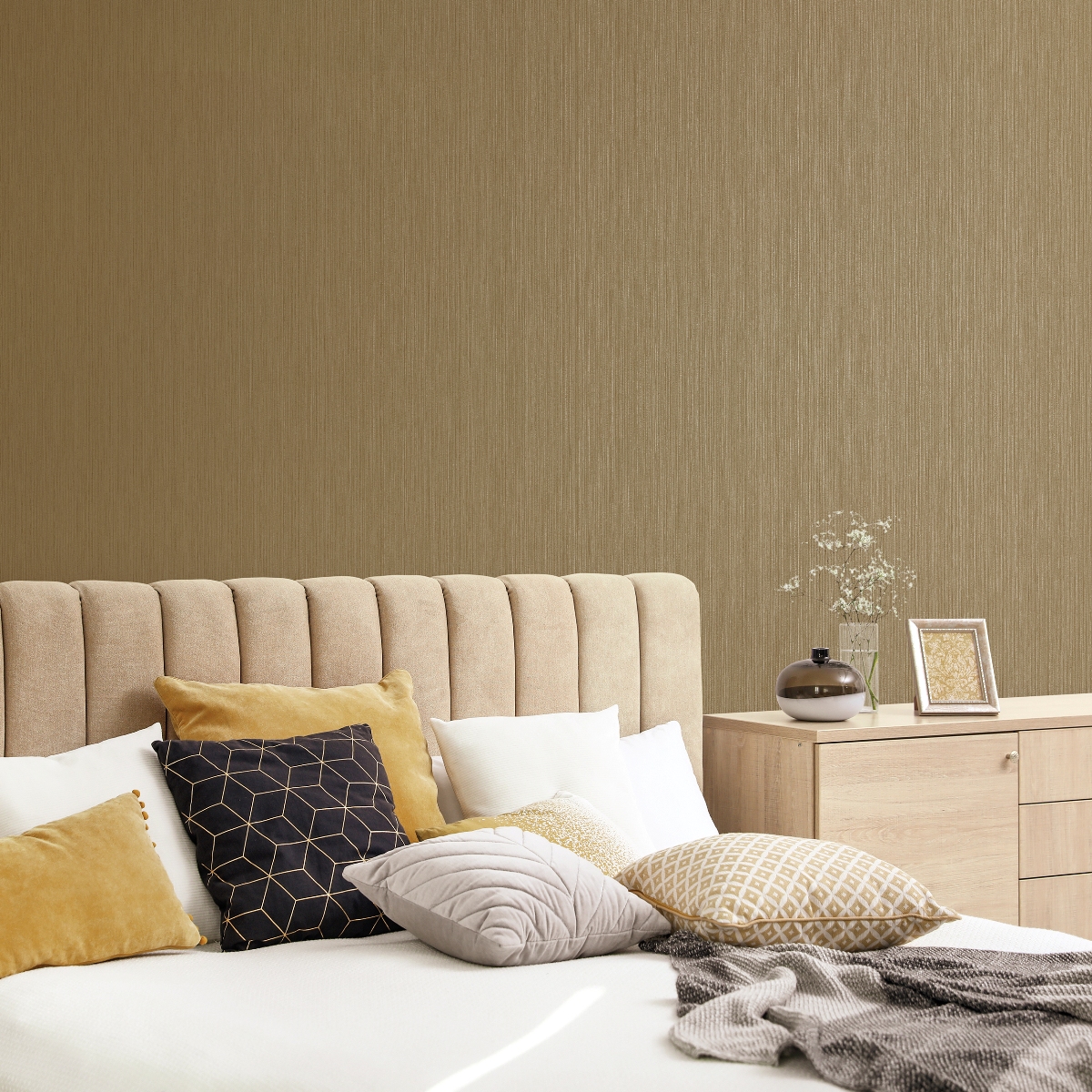 Обои с текстурой изящных металлизированных эффектов. Современная цветовая палитра подчеркивает эффектность дизайна.