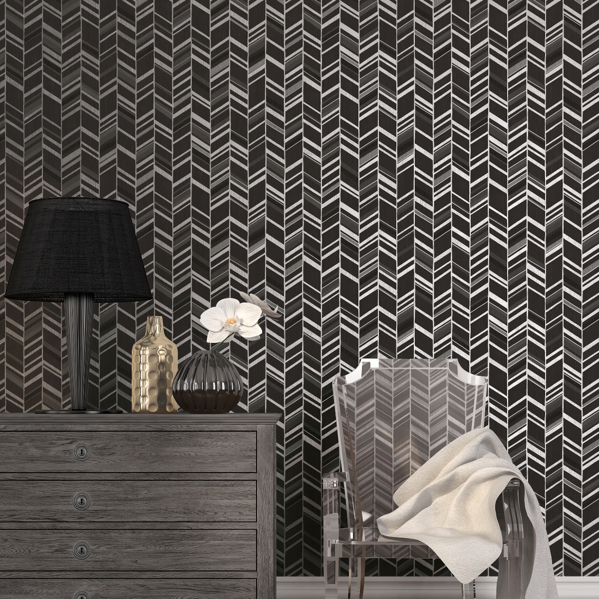 Обои с текстурой изящных металлизированных эффектов. Современная цветовая палитра подчеркивает эффектность дизайна.