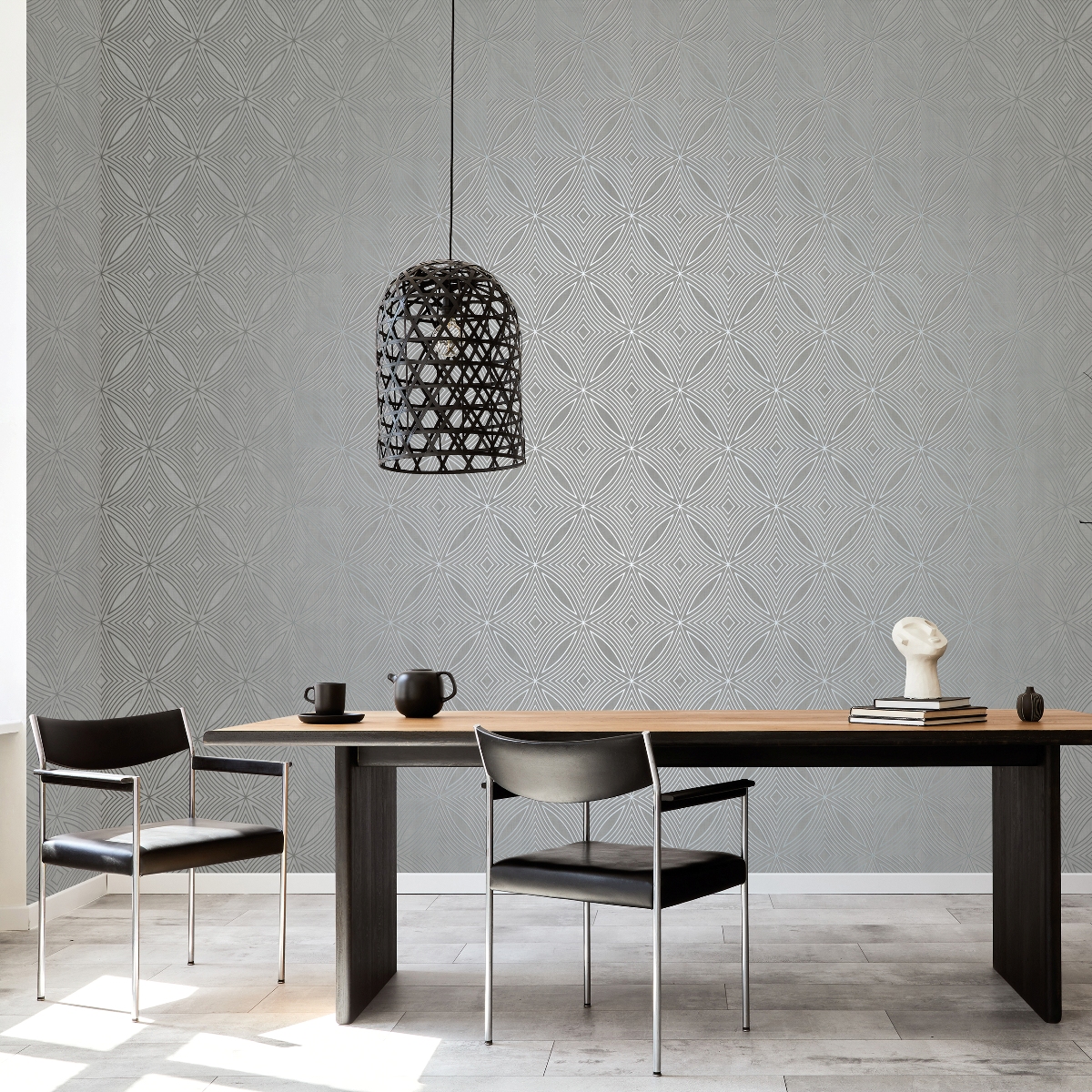 Обои с текстурой изящных металлизированных эффектов. Современная цветовая палитра подчеркивает эффектность дизайна.