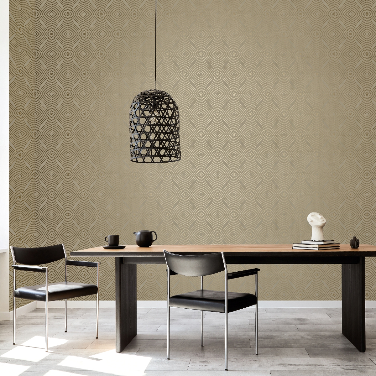 Обои с текстурой изящных металлизированных эффектов. Современная цветовая палитра подчеркивает эффектность дизайна.