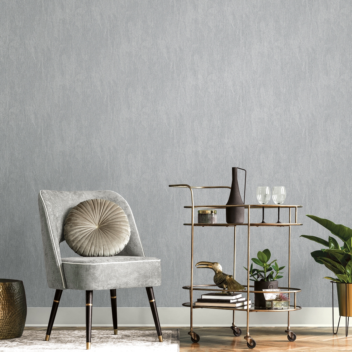 Обои с текстурой изящных металлизированных эффектов. Современная цветовая палитра подчеркивает эффектность дизайна.