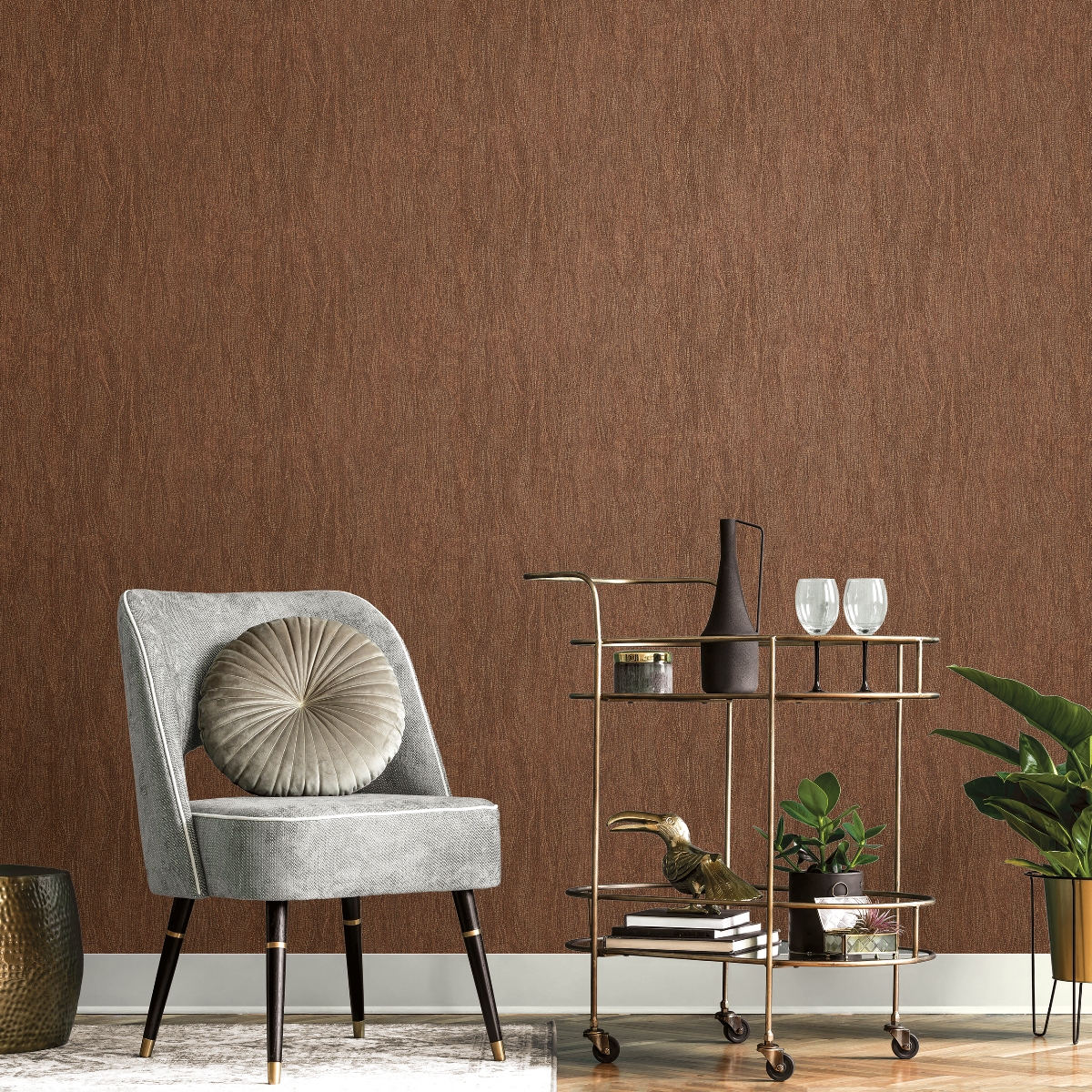 Обои с текстурой изящных металлизированных эффектов. Современная цветовая палитра подчеркивает эффектность дизайна.