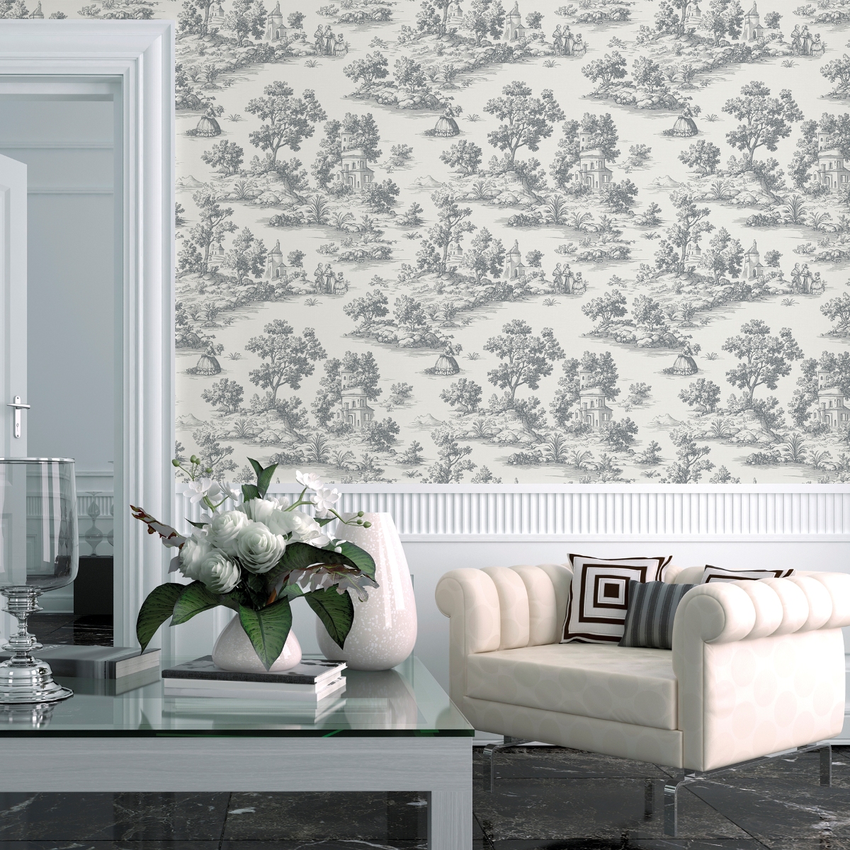 Дизайнерские обои с сюжетными образами в стиле Жуи.