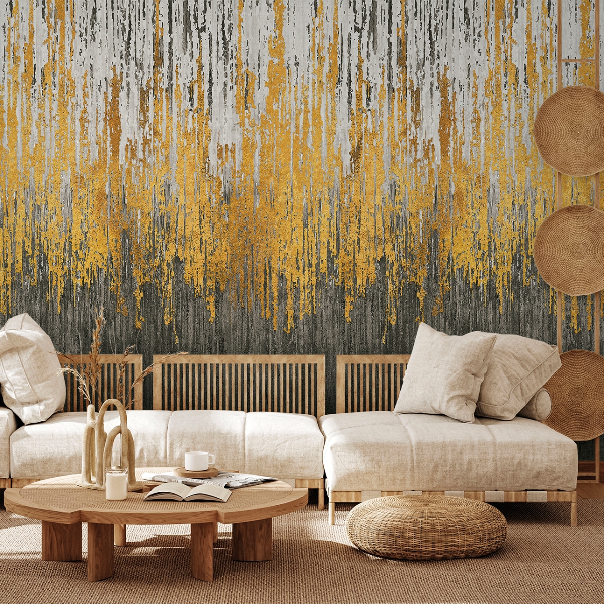 Дизайн Gold Grunge. Размер 424*280см 8 панелей по 53 см в одном рулоне.